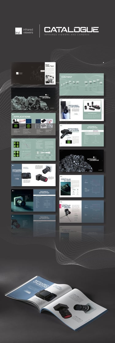 Tehniniai brėžiniai ir specifikacijos apsijungia ir sukuria vieningą ir menišką katalogo dizainą.